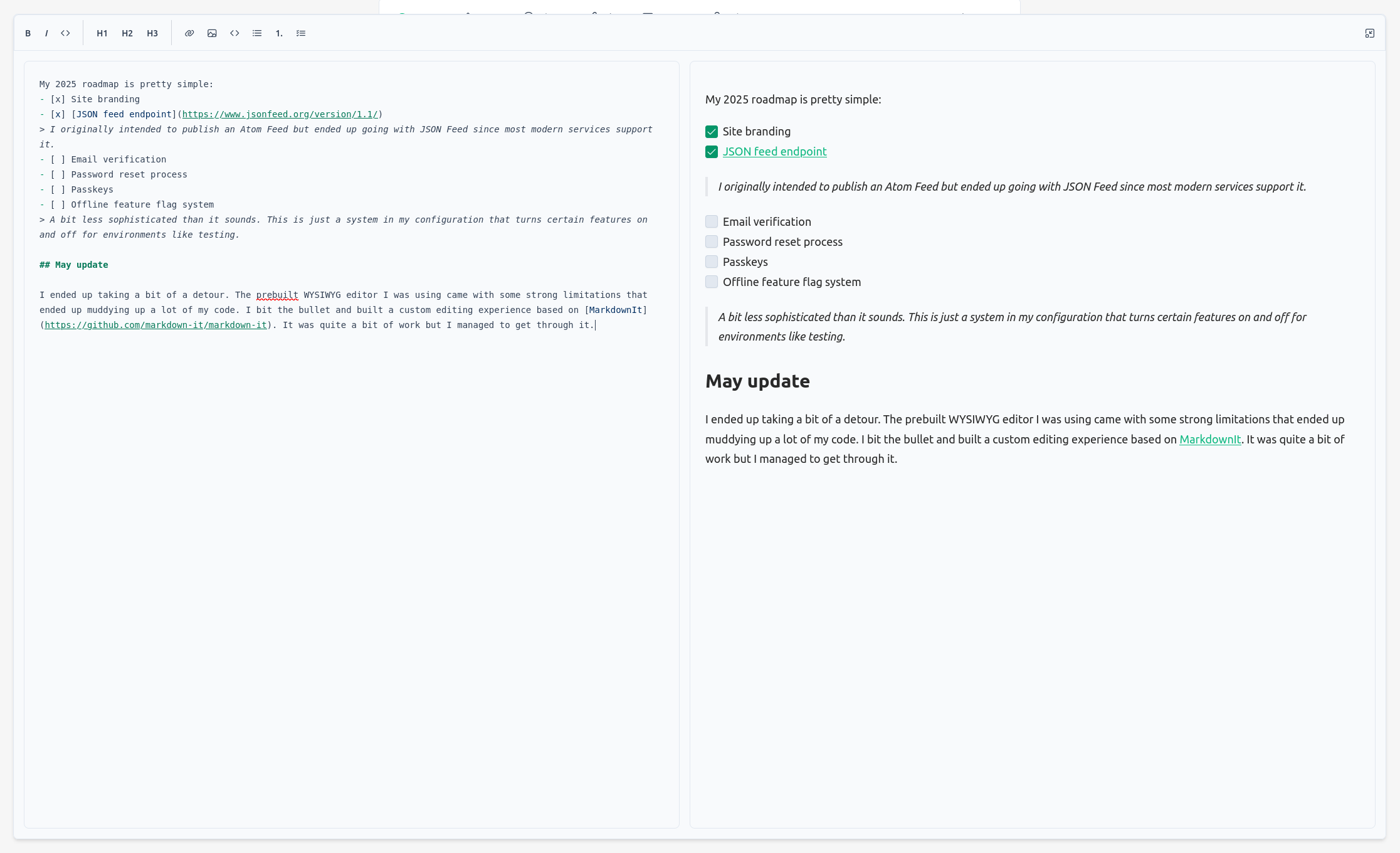 The default editing experience is now pretty nice. The total list of features so far is: