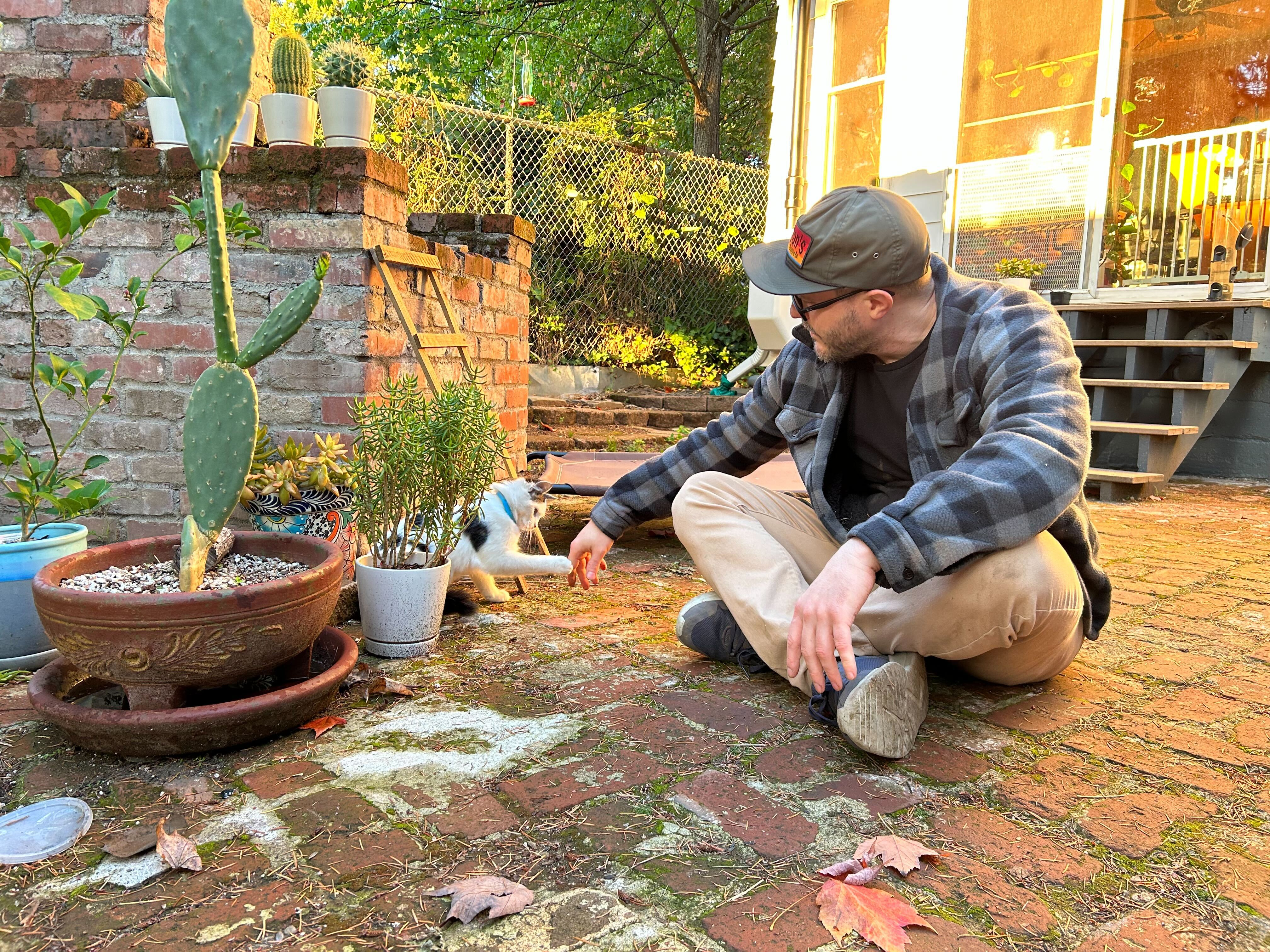 Now enjoy a photo of Carlos and I from when he was a kitten. Also starring my prickly pear cactus and lemon tree.